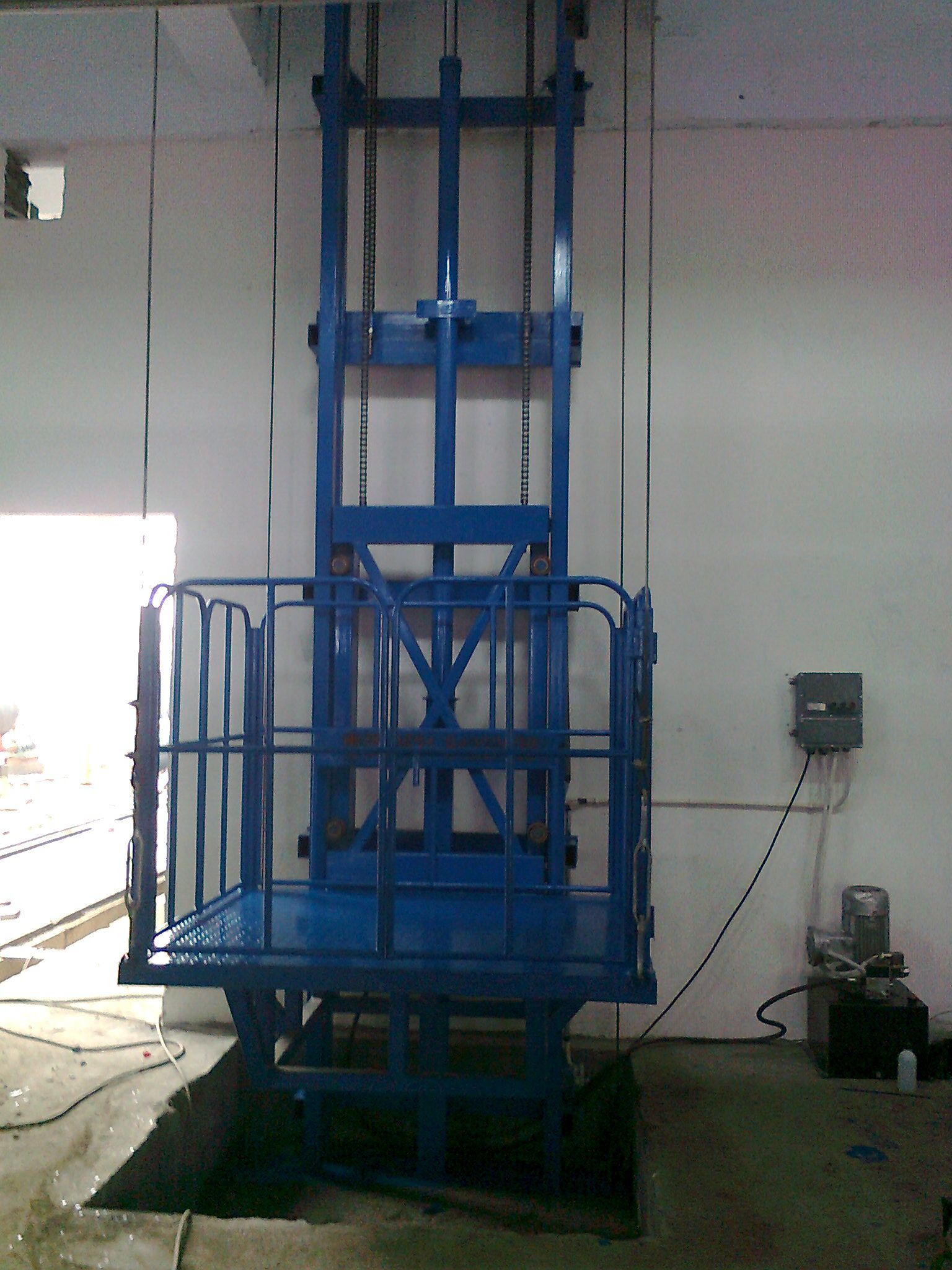 導軌式升降機,主要用于樓層間高空貨物運輸。主要用在載重量輕,臺面尺寸要求比較小的環境.載重1-3噸,升高高度1-25米.室內、室外均可安裝導軌式升降機也叫做液壓提升機,提升高度高,采用旁置油缸,運行平穩、噪音低、維修方便、使用壽命較長;停電時,可使用手動應急下降,安全、方便、快捷、實用;地坑深度一般為15cm-30cm,頂層高度不受限制,可根據現場環境定做用.
